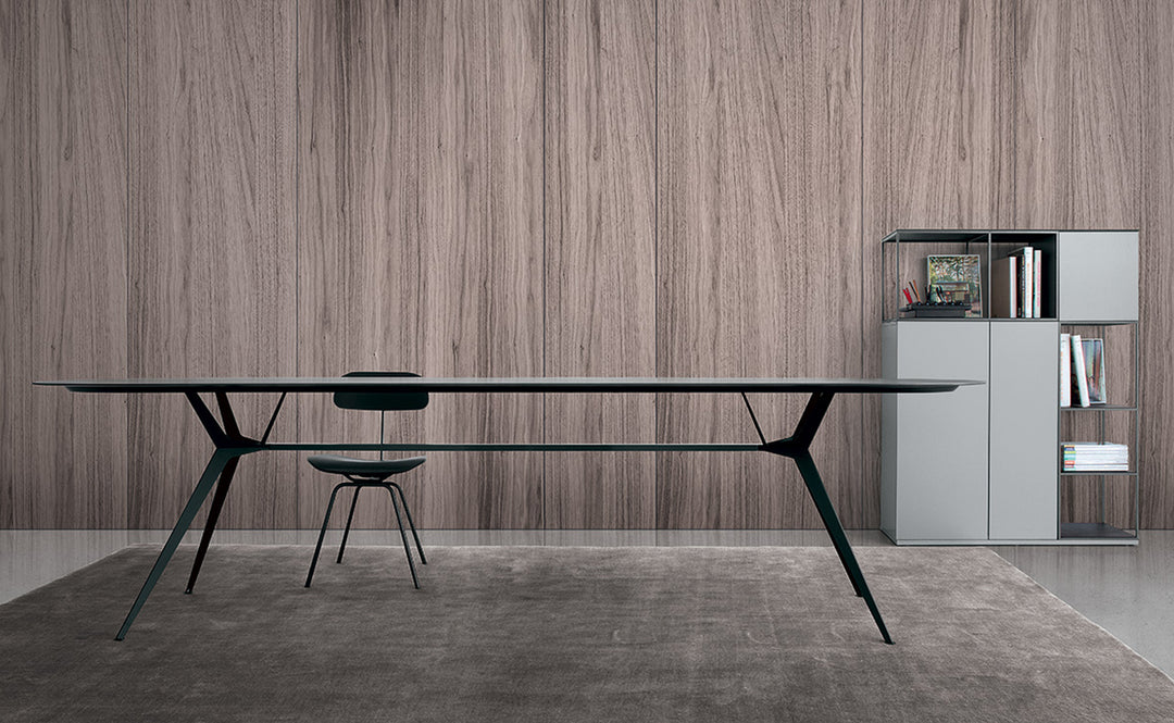 Materiaal | Onderstel: staal; top: HPL, Fenix, Ecotouch, houtfineer, messing, massief hout of betoncomposie |