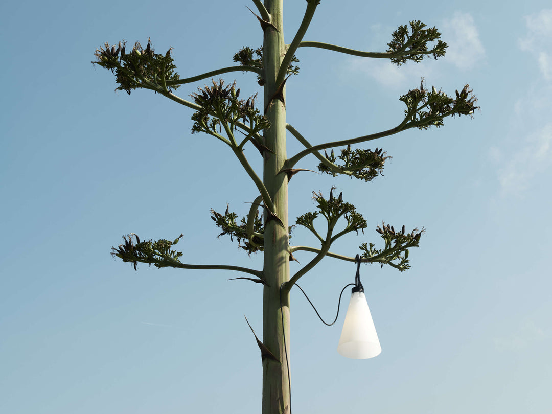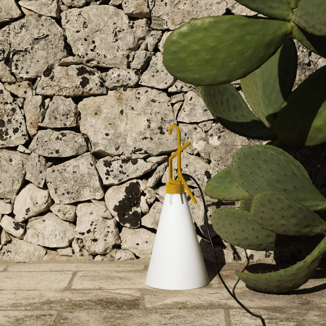 De Mayday heeft nu ook een Outdoor uitvoering. Het is een draagbare lamp met vele toepassingen. Hij kan gebruikt worden als hanglamp, vloerlamp en tafellamp. De hanger en handgreep kunnen gebruikt worden als kabelhaspel voor het 5 meter lange snoer. Met een drukknopschakel op het handvat.