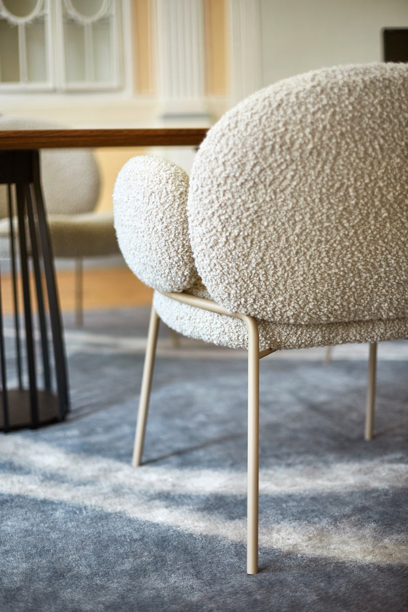 Naast dit model met armleuningen bestaat de Nana serie ook uit een eetkamerstoel zonder armleuningen, een fauteuil, en een sofa.