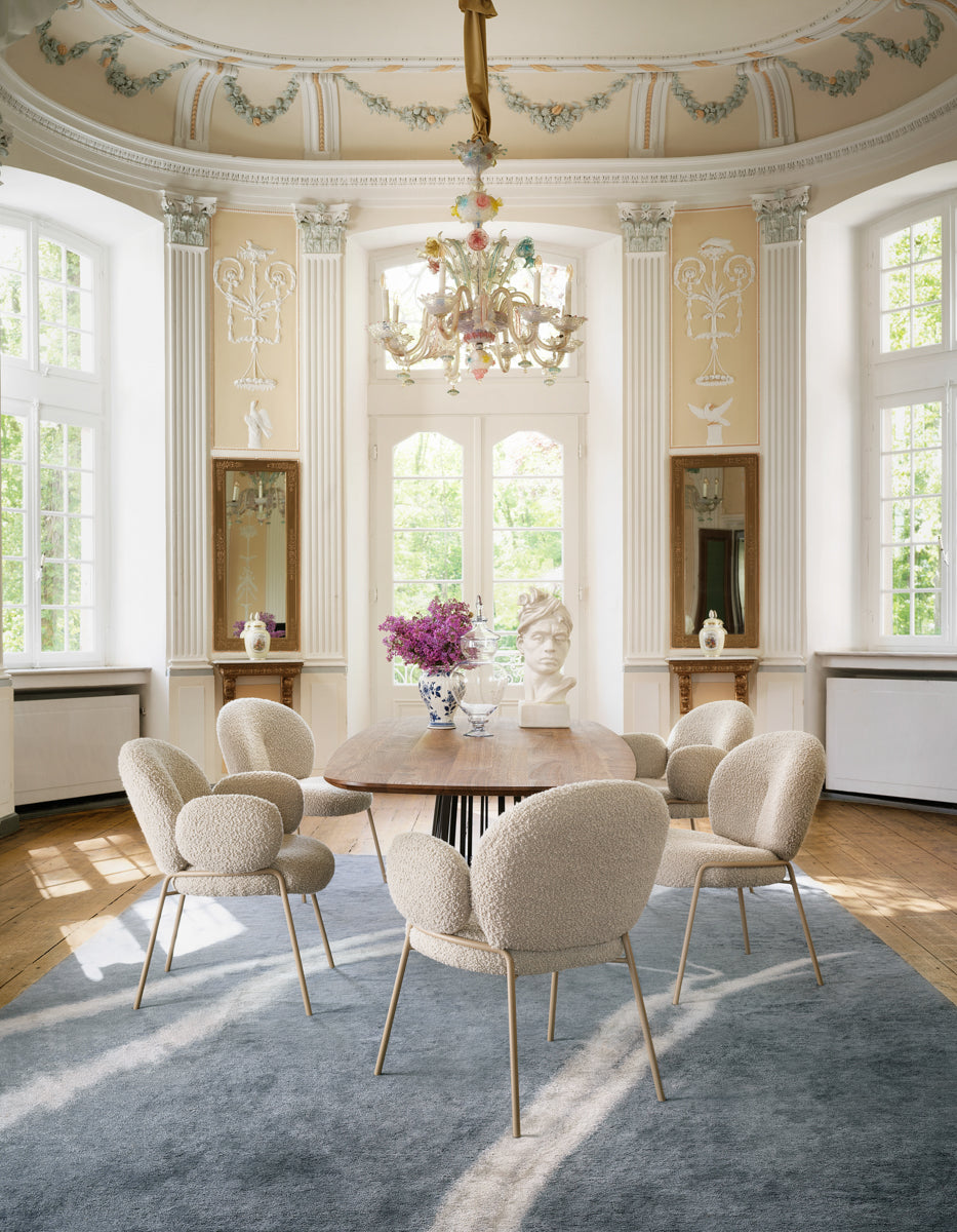 Bij de Freifrau Nana stoel is het net alsof je op een zachte wolk zit. De Nana is een ontwerp van Hanne Willmann en de vormentaal die zij heeft toegepast is vriendelijk en elegant. Er zijn vele framekleuren en stoffen mogelijk. Verschillende stoftexturen geven de ronde kussens een totaal ander uiterlijk.