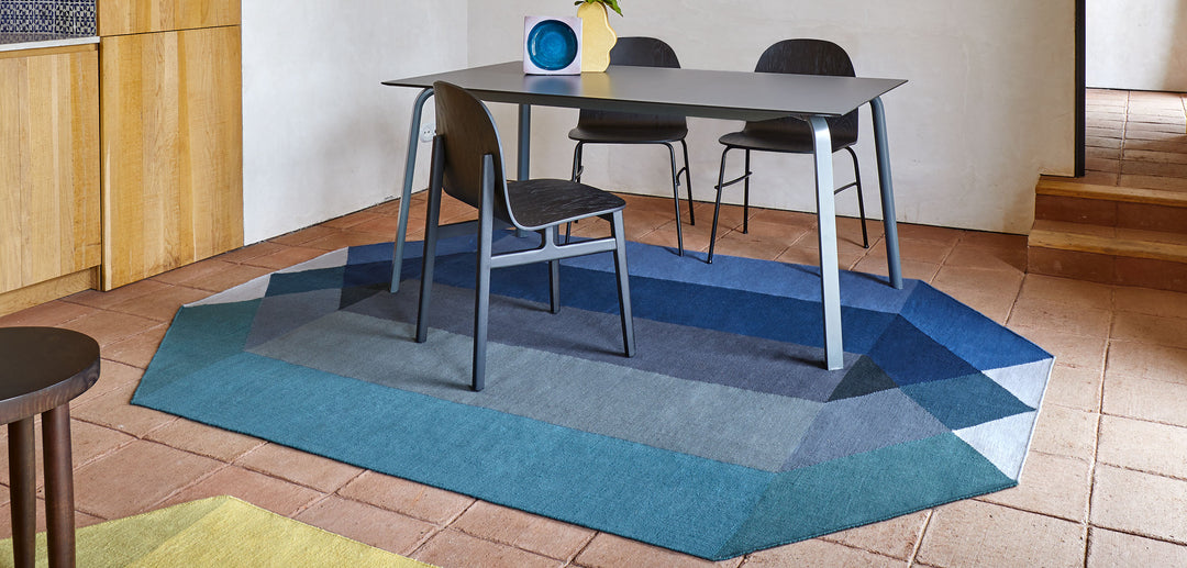 Diamond is een tapijt voor buiten, gemaakt van 100% gerecycled PET. Het kleed heeft de vorm van een veelzijdige gekleurde diamant. Er zijn zes kleurencombinaties beschikbaar. Het kleed is verkrijgbaar in drie maten, maar kan op verzoek ook in afwijkende maten geleverd worden met een maximale lengte en breedte. De prijs daarvan is afhankelijk van maatwerk. In de winkel maken we graag een rekenvoorbeeld voor je.