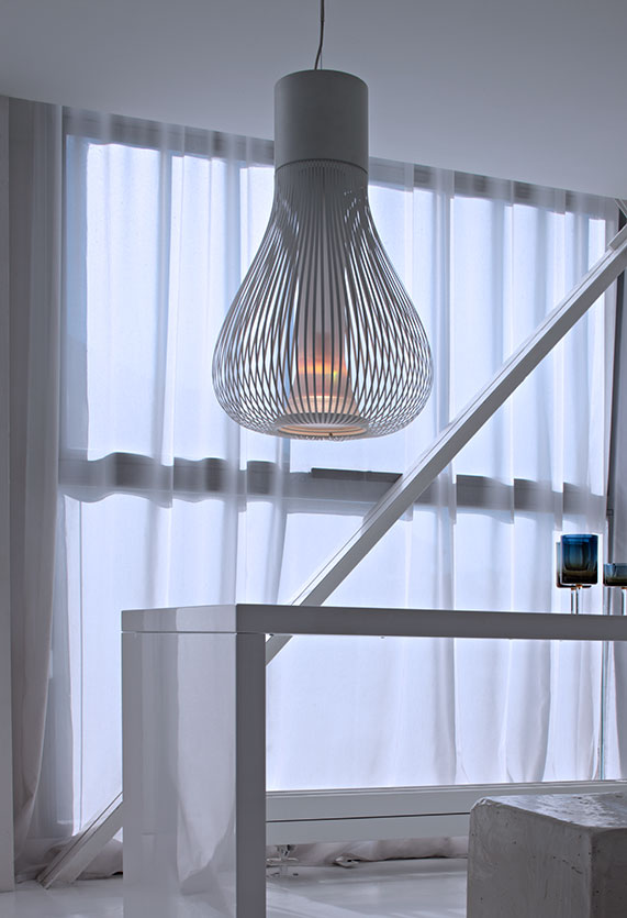 Kenmerkend voor de Chasen Hanglamp is de vorm: de lamp is te veranderen door de lamellen heen en weer te schuiven. Hiermee kan de lichtval en de vorm veranderd worden. De lamp heeft een chemisch foto-geëtste roestvrijstalen behuizing en een speciale diffusor. De lamp is geïnspireerd op een oud oriëntaals gebruiksvoorwerp dat centraal staat in de theeceremonie: de bamboezweep.