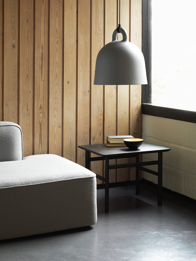 De Normann Copenhagen Bell is ontworpen door Lund & Jacob Rudbeck. De lamp oogt industrieel en robuust, maar mede door zijn minimalistische vorm ook vriendelijk. De ontwerpers namen als startpunt de vorm van een bel. De ronde silhouet en het matte oppervlak geven de indruk dat de lamp gemaakt is van gegoten metaal. Speciale aandacht is gegeven naar de details van de Bell lamp. Zo is de lamp op een hedendaagse manier bevestigd aan de kabel. De kabel is gemaakt van een mooi 4 millimeter dik textielkoord. Het mat gecoate aluminium en het zachte rubber geven een mooi en discreet contrast. Het licht wordt door de witte binnenkant van de Bell goed naar beneden gereflecteerd waardoor de lamp mooi en functioneel neerwaarts licht geeft. De Bell past goed in verschillende ruimtes, zoals de keuken, woonkamer, slaapkamer of hal. De lamp is sterk op zichzelf, maar je kunt de lamp ook erg goed met meerderen op een rij hangen, of juist in een cluster.