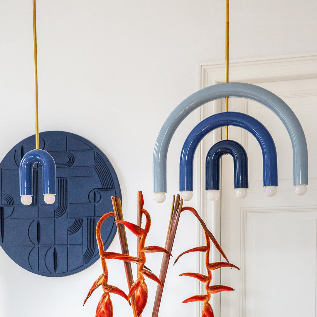 Er zijn 18 verschillende vormcombinaties gemaakt, waarbij bij ieder onderdeel gekozen kan worden uit 14 kleuren. Het keramiek wordt met de hand in deze kleuren geglazuurd wat een mooie unieke uitstraling geeft. Het ophangsysteem is gemaakt van messing.