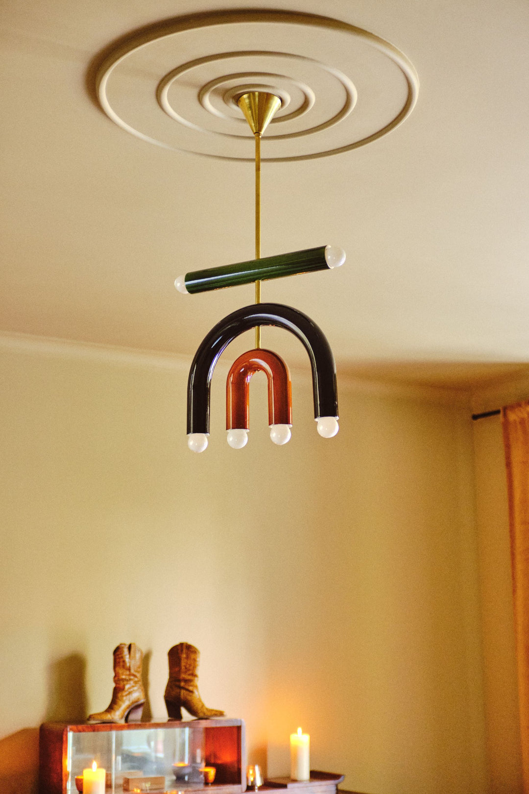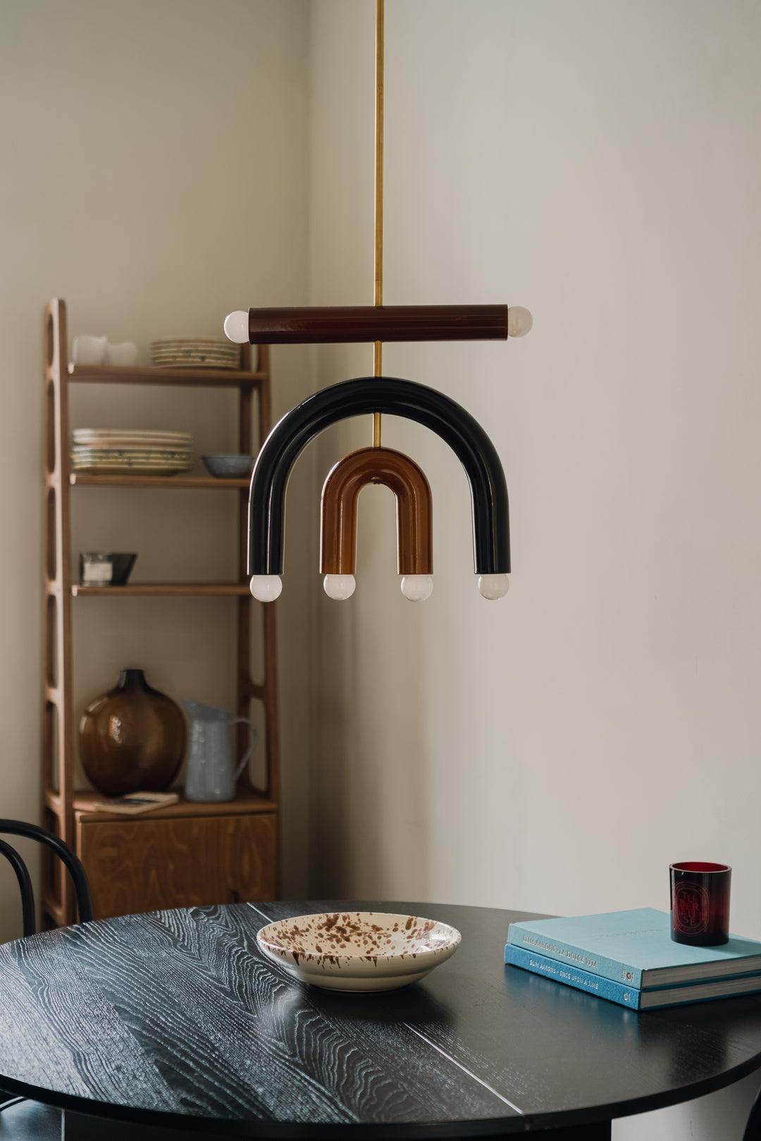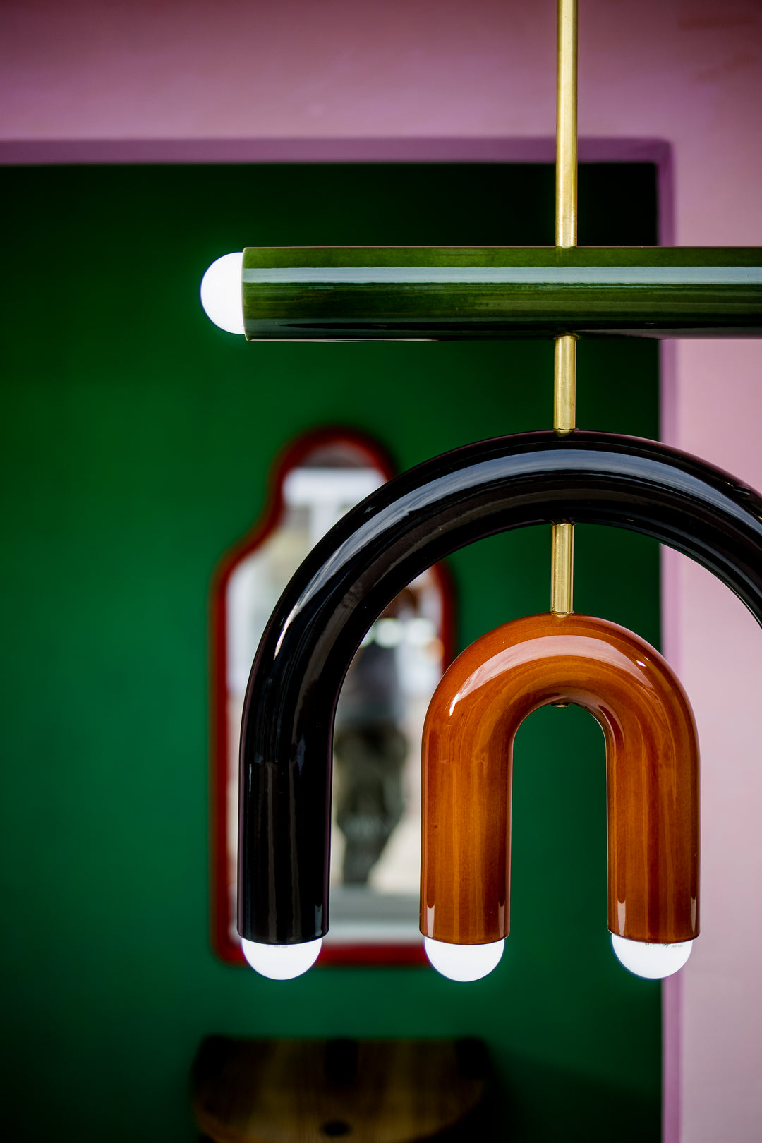 Er zijn 18 verschillende vormcombinaties gemaakt, waarbij bij ieder onderdeel gekozen kan worden uit 14 kleuren. Het keramiek wordt met de hand in deze kleuren geglazuurd wat een mooie unieke uitstraling geeft. Het ophangsysteem is gemaakt van messing.