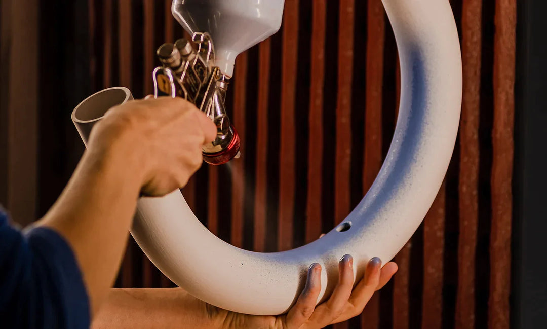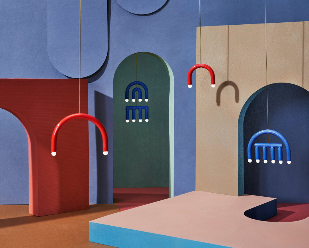 Er zijn 18 verschillende vormcombinaties gemaakt, waarbij bij ieder onderdeel gekozen kan worden uit 14 kleuren. Het keramiek wordt met de hand in deze kleuren geglazuurd wat een mooie unieke uitstraling geeft. Het ophangsysteem is gemaakt van messing.
