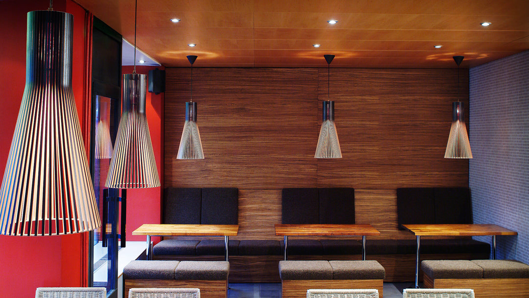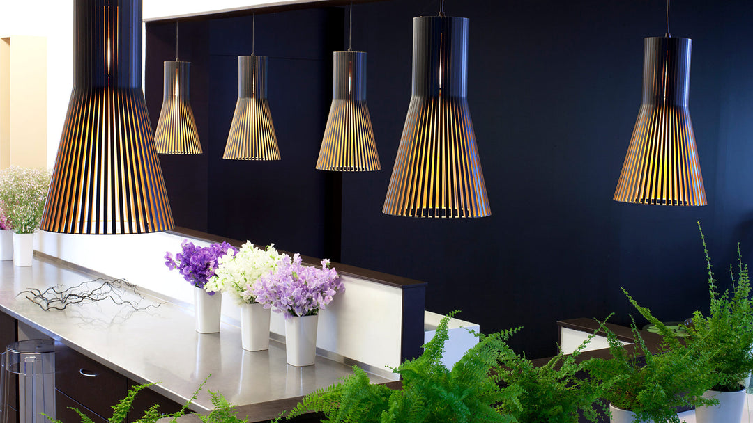 De lampen van Secto Design worden volledig door Finse vaklieden met de hand gemaakt van Fins berkenhout. De lampen zijn gemaakt van gelamineerde latten en zijn met elkaar verbonden door ringen van multiplex.