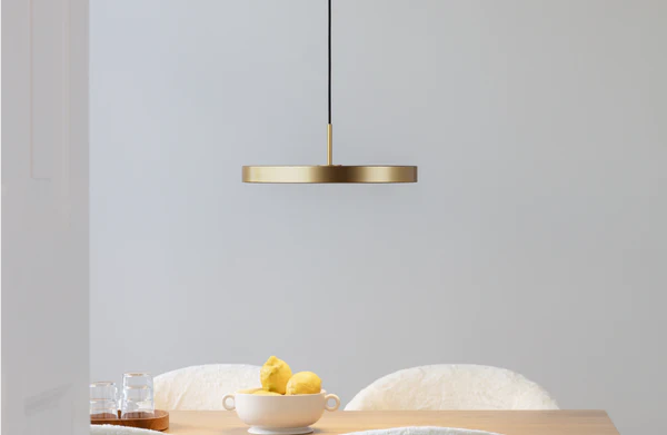 De Asteria hanglamp van Umage heeft een strakke en minimalistische uitstraling. De lamp is een samenkomst van design, technologie en vakmanschap. Het bevat een geïntegreerde LED bron die dimbaar is met een externe dimmer. De witte diffuser zorgt voor een zachte verlichting in de omringende ruimte.