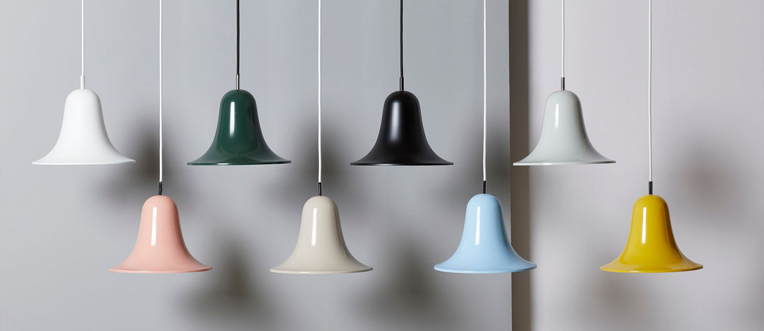De Pantop Hanglamp is ontworpen in 1980 en wordt gekenmerkt door een klokvormige, wijd uitlopende kap die met de opening naar beneden is gemonteerd. De Pantop Ø23-versie is verkrijgbaar in een reeks mooie kleuren. Met een zwarte textielkabel. De lamp is dimbaar via een externe dimmer.