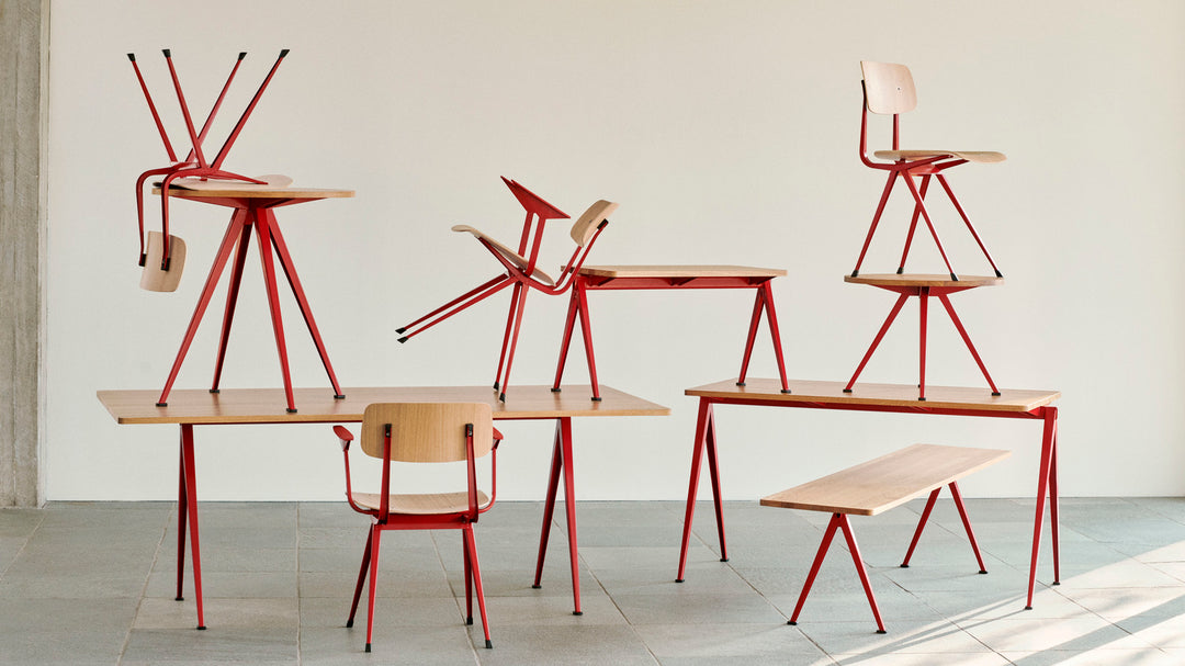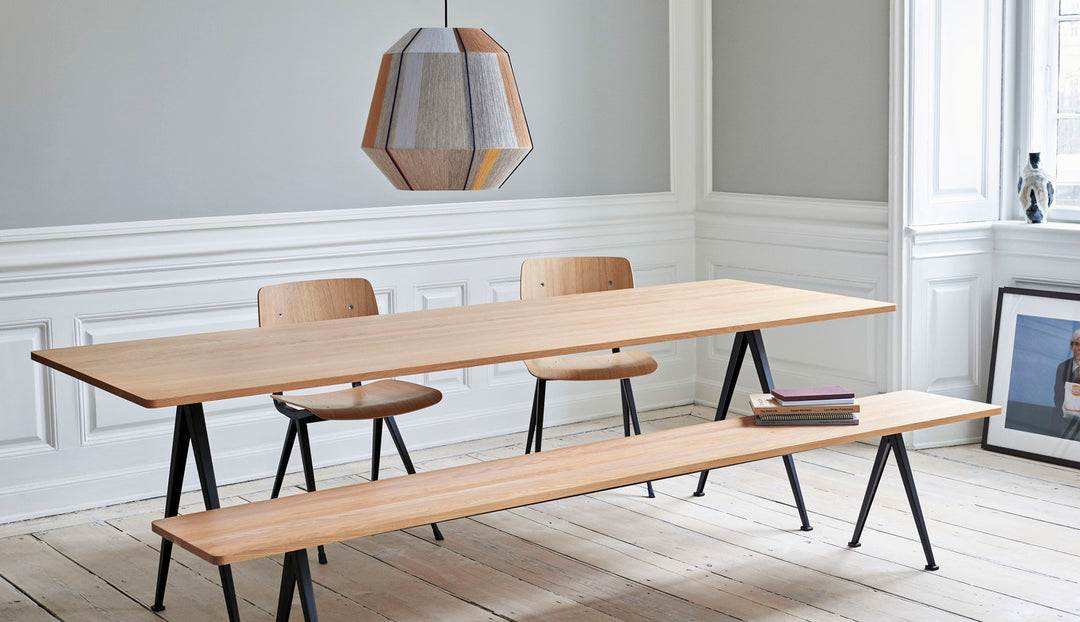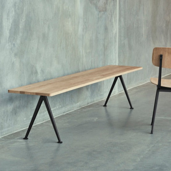 De Pyramid bench van Hay is een Dutch Design klassieker uit 1959, ontworpen door Wim Rietveld. In samenwerking met Ahrend is dit model weer in productie genomen. De zitting is massief eiken en het frame is van plaatstaal met een poedercoating in de kleur zwart.