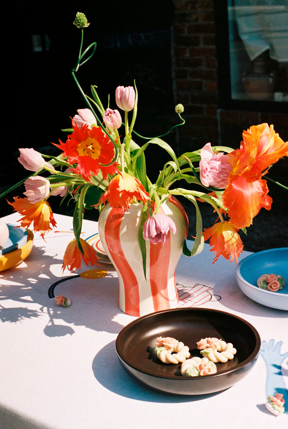 De Sobremesa Stripe Vase is een decoratieve vaas die is ontworpen om sfeer te geven aan elke tafelsetting. Met de hand beschilderd keramiek met een kleurrijk streeppatroon dat elke vaas een unieke kwaliteit geeft.