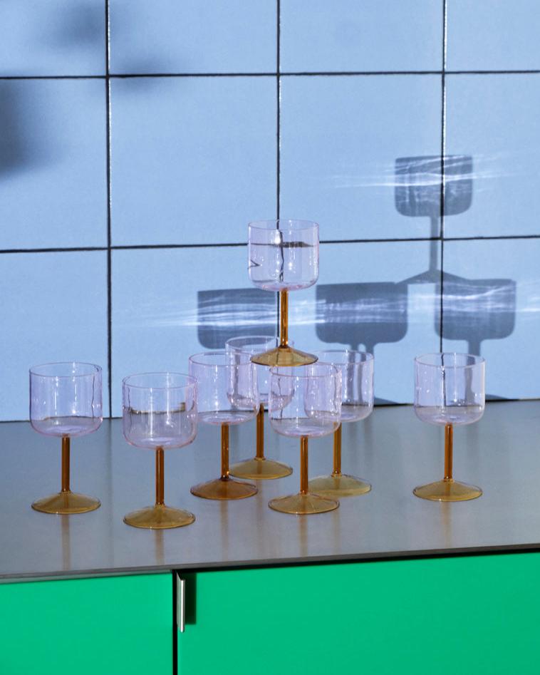 De Tint wijnglazen van Hay maken feestelijke momenten nog een slagje leuker. De glazen zijn gemaakt van borosilicaat glas en kunnen voor allerlei koude dranken toegepast worden. De Tint Wine Glasses komen als set van 2.