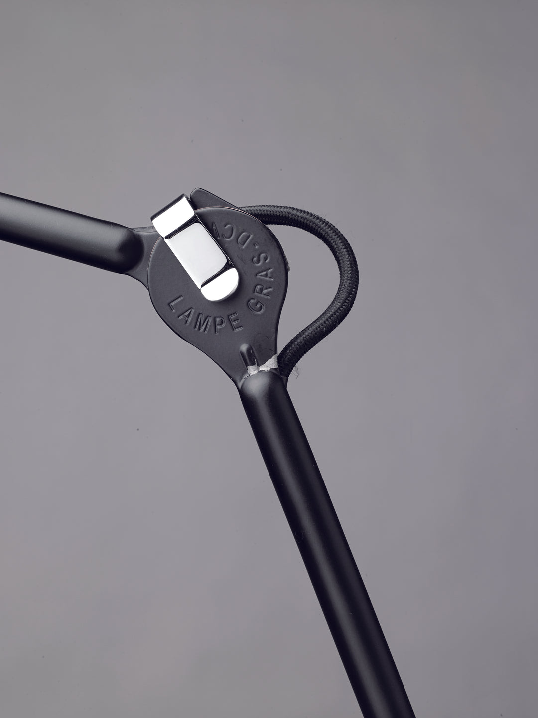 De 'Lampe Gras N°201' Tafellamp heeft een klemvoet; de arm, stang en kap zijn allemaal verstelbaar en de hoofdarm kan 360° draaien, waardoor het licht het gewenste bereik krijgt. De lampenkappen zijn verkrijgbaar in een breed scala aan metalen en geverfde afwerkingen en zijn verkrijgbaar in een ronde of conische vorm. De tafelklem is niet geschikt voor tafels dikker dan 3,5 cm. Met een schakelaar op de kabel.