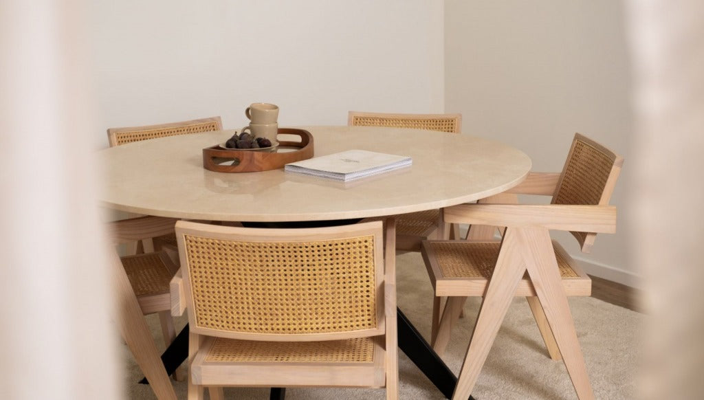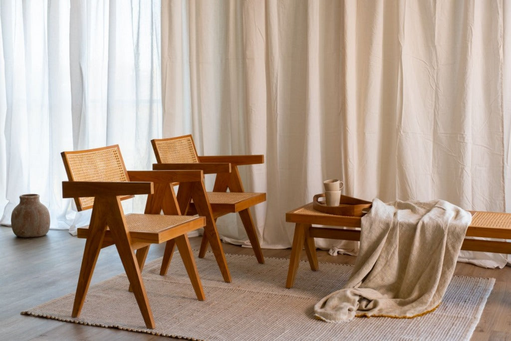 De Aime Té Pierre is een stijlvolle houten stoel geïnspireerd op de Zwitserse ontwerper Pierre Jeanneret. De iconische “Office Chair” is in 1955 ontworpen in de Chandigarh-stijl van de jaren vijftig en heeft een modernistische stijl. De combinatie van het teakhout en de gevlochten rieten zitting maken de rotan eetkamerstoel een minimalistische en grafische verschijning.
