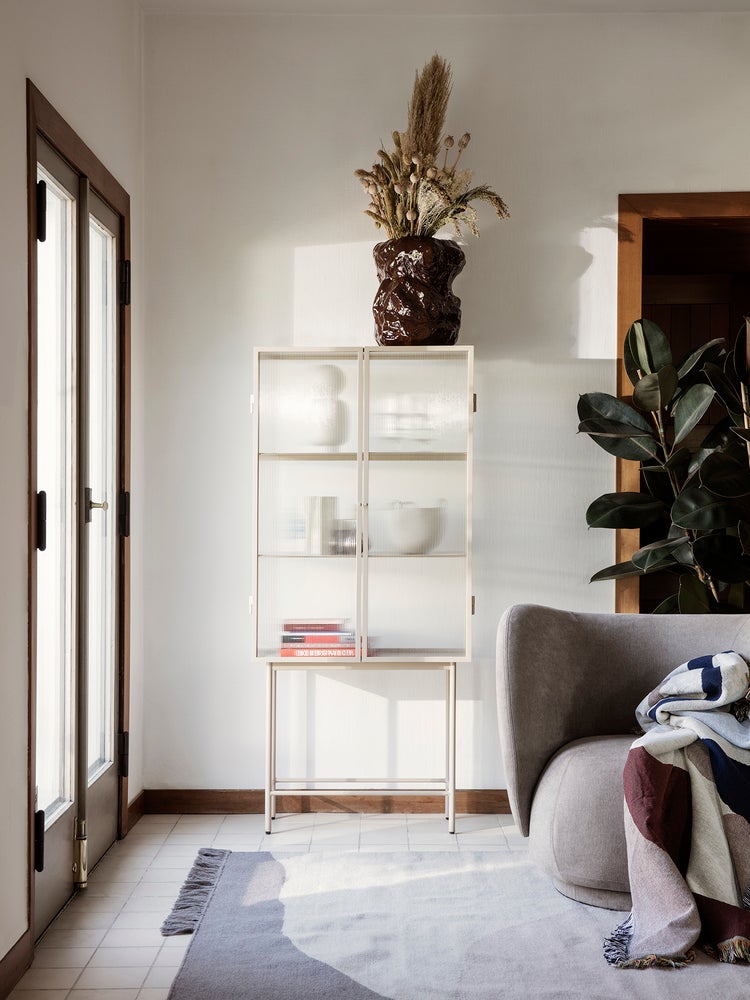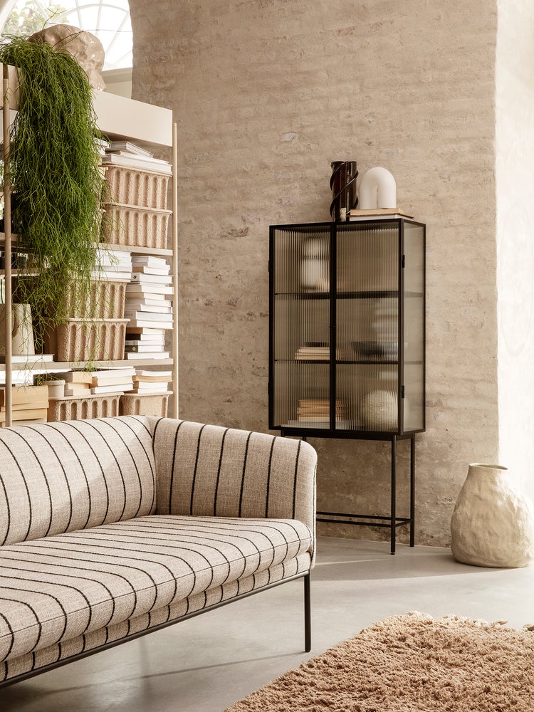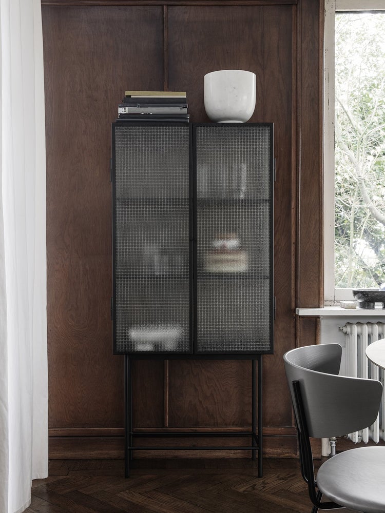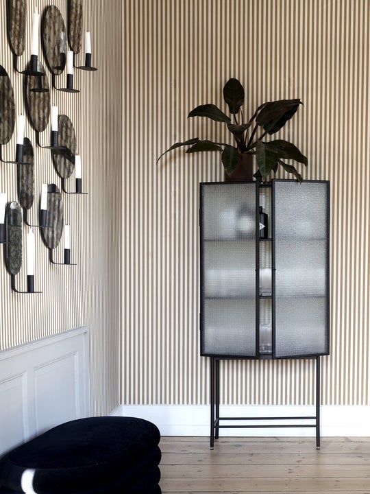 De Haze vitrine is een minimalistische kast in een Scandinavisch jasje. Gebruik deze luchtige vitrine in de eetkamer als servieskast of in de badkamer om handdoeken in op te bergen. De kast is uitgevoerd met glas in verticale lijnen en bij de zwarte uitvoering is ook mogelijk om het glas in een kruispatroon uit te voeren. De kast is uitgevoerd met twee metalen planken.