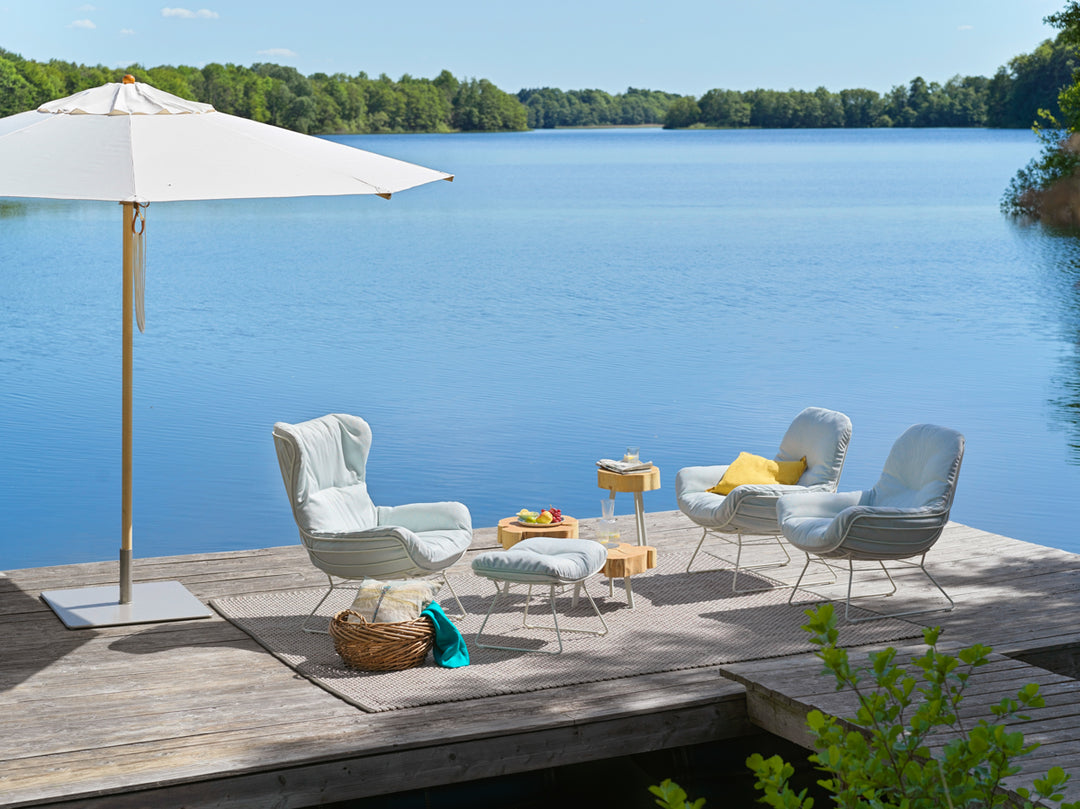 De Freifrau Leyasol borduurt voort op de Leya serie en kan naast indoor ook in speciale uitvoeringen buiten toegepast worden. De Leyasol heeft een weersbestendig frame en de Lopi van Sunbrella is een stof die buiten toegepast kan worden. De Leyasol kussens zijn gevuld met hoogwaardig kunstdons en kunnen eenvoudig worden verwijderd en opgeborgen.