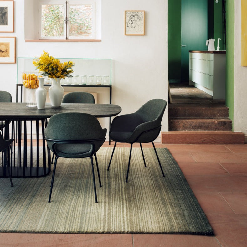 De Freifrau Theia is een luchtig ontwerp van Sebastian Herkner met een frame wat verfijnd om de kuip loopt. De Armchair High is de eetkamerstoel variant met hogere armleuningen binnen de Theia serie. Naast dit model is er ook een Theia met lagere armleuningen.