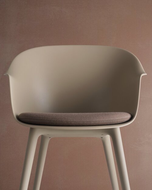 Er is ook een model voor buiten. Daarvan zijn zowel de kuip als het onderstel van polypropyleen. De stoel is geheel afgewerkt in één kleur en verkrijgbaar in New Beige en Alabaster White.