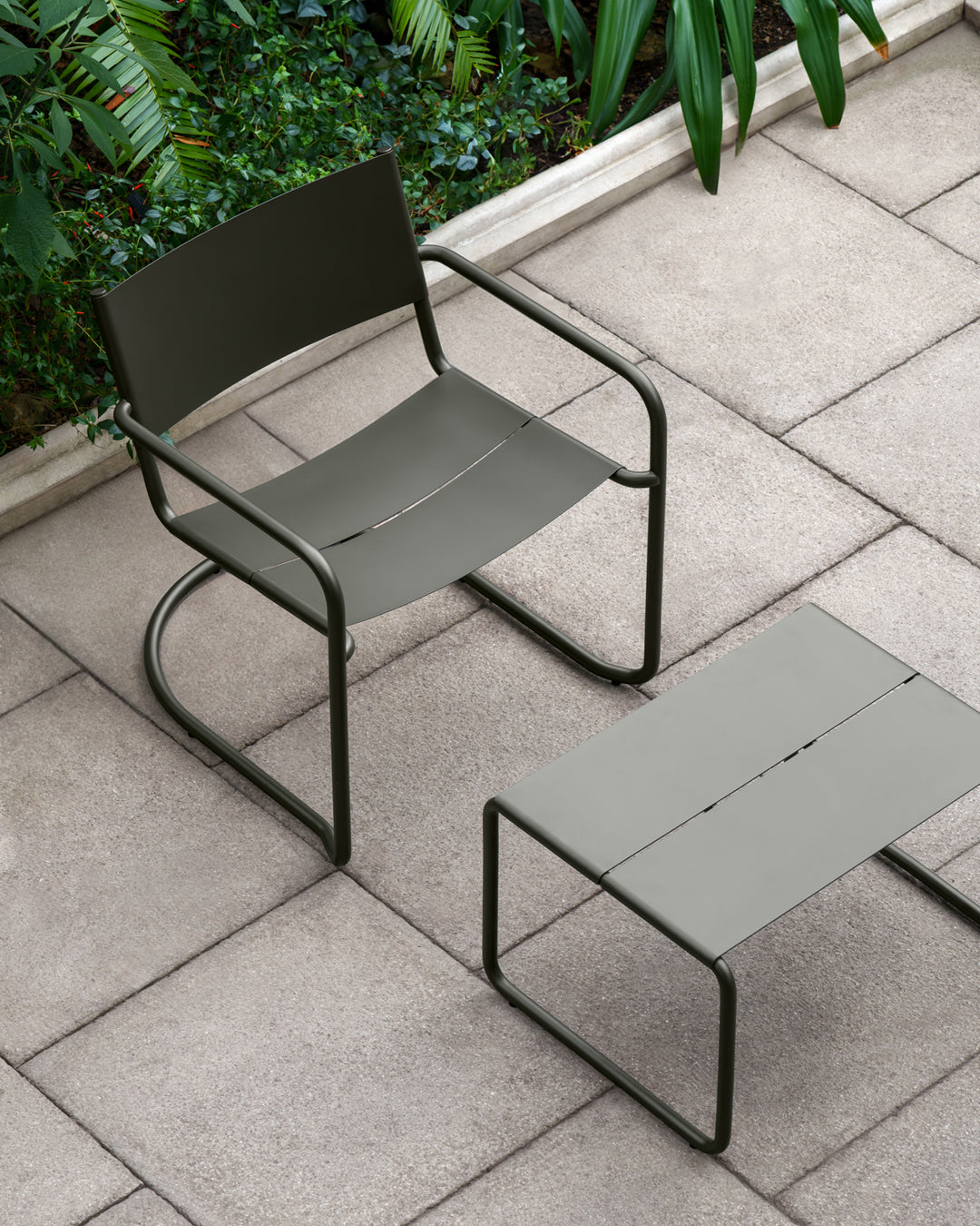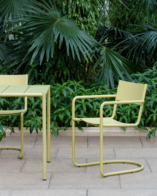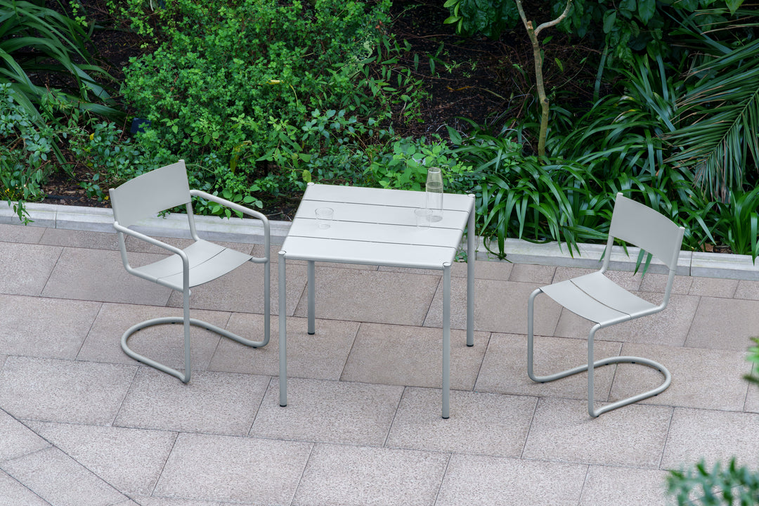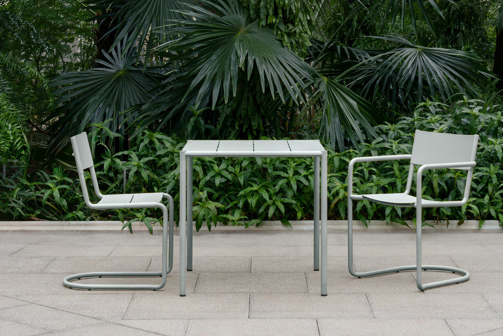 Sine is een serie roestvrijstalen buitenmeubelen. De eet- en loungestoelen hebben een vrijdragend onderstel dat geïnspireerd is op klassieke Zweedse meubelen en een lichte veerkracht geeft als je erop zit. In combinatie met de gebogen zitting en rugleuning zijn de stoelen uiterst comfortabel.
