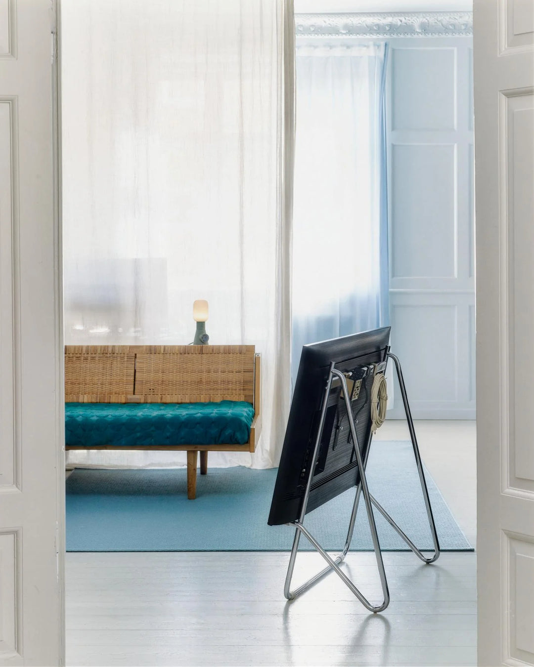 Wil je eens wat anders dan de standaard TV opstelling met een TV kast? De Bloom is een TV standaard van het Deense Pedestal. Bij dit ontwerp staat de TV onder een lichte hoek op twee houders. Door de op de bovenste buis bevestigde veiligheidsbanden is uw tv goed vastgemaakt aan de tv-standaard. Het frame is elegant gebogen en afgewerkt met een poedercoating of verchroomd.