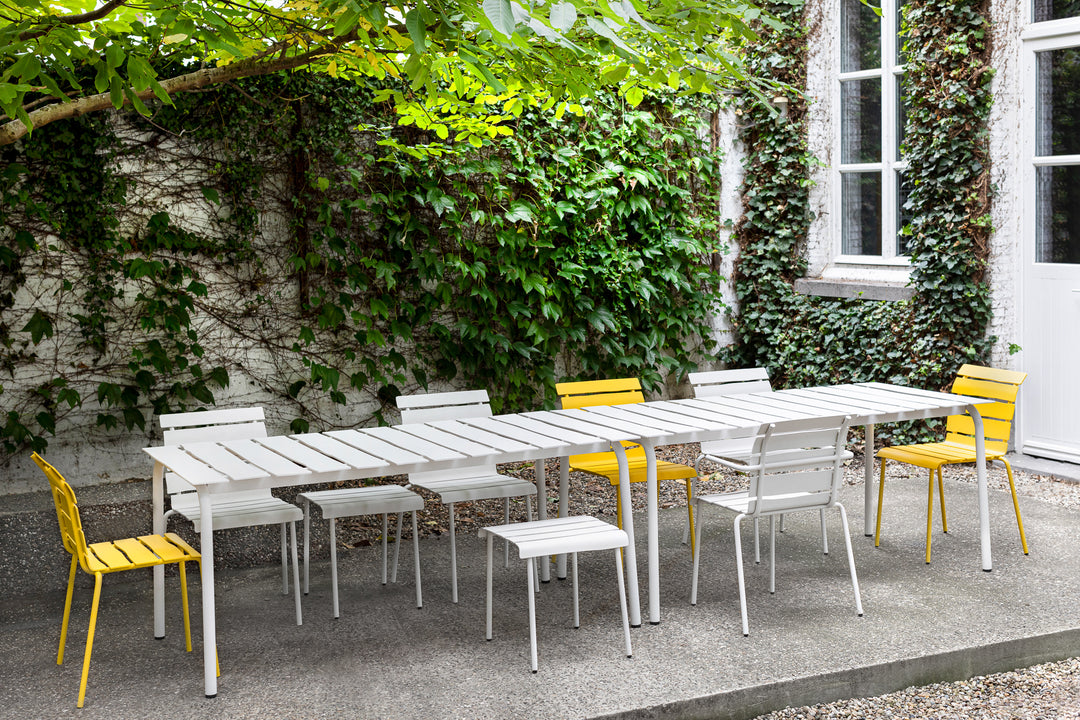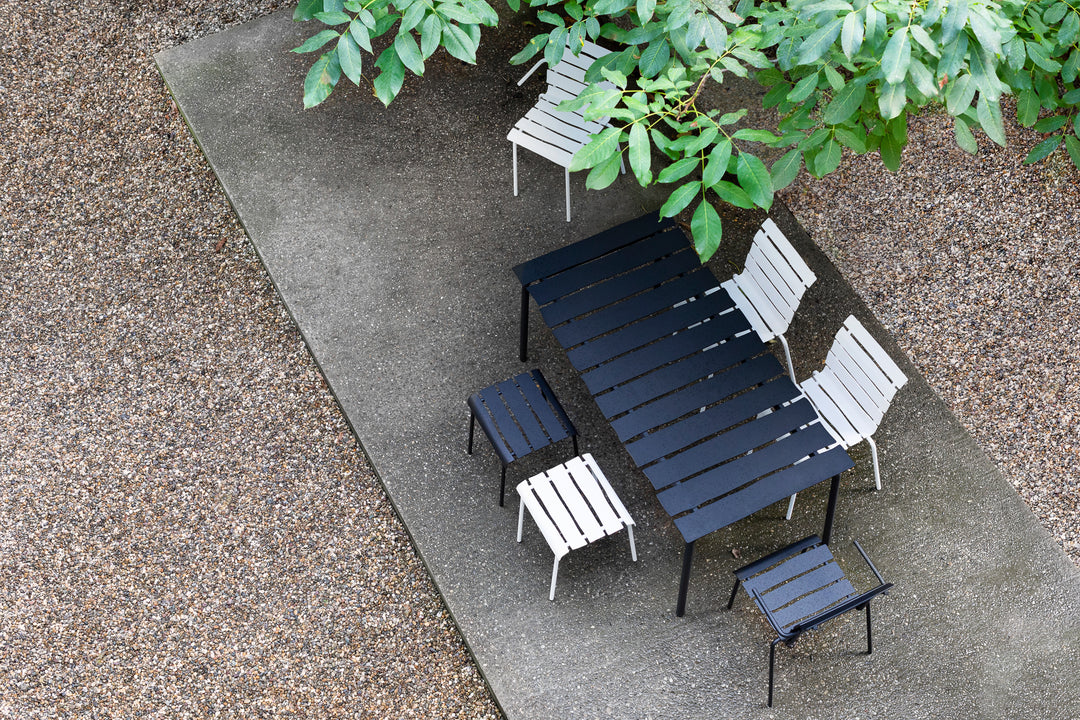 De Valerie Objects Aligned outdoor eettafel is ontworpen door Maarten Baas. Na het creëren van een groot aantal serviesgoed voor Valerie Objects, ontwierp Baas een collectie buitenstoelen en een tafel.