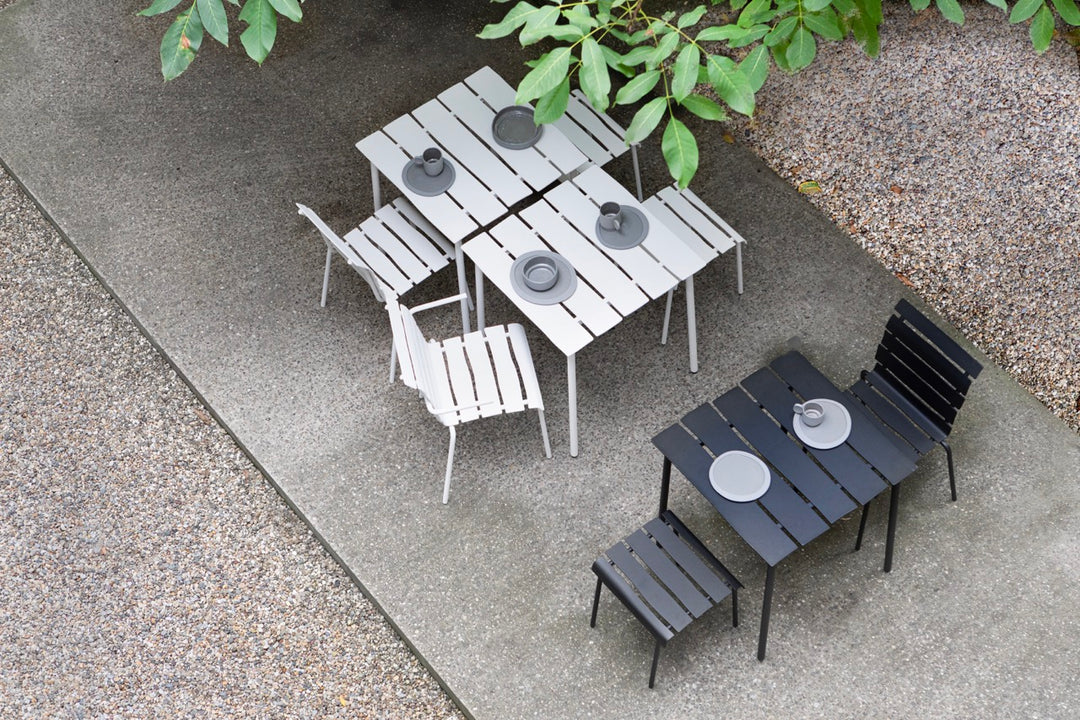 De Valerie Objects Aligned outdoor serie is ontworpen door Maarten Baas. Na het creëren van een groot aantal serviesgoed voor Valerie Objects, ontwierp Baas een collectie buitenmeubilair.
