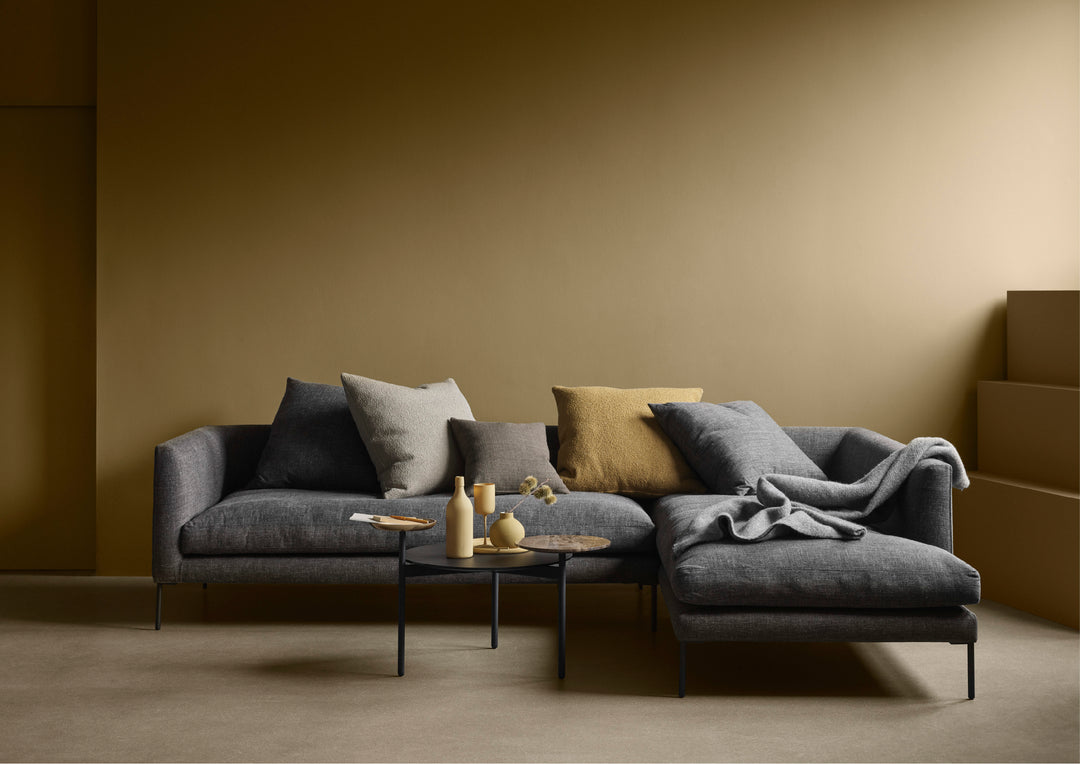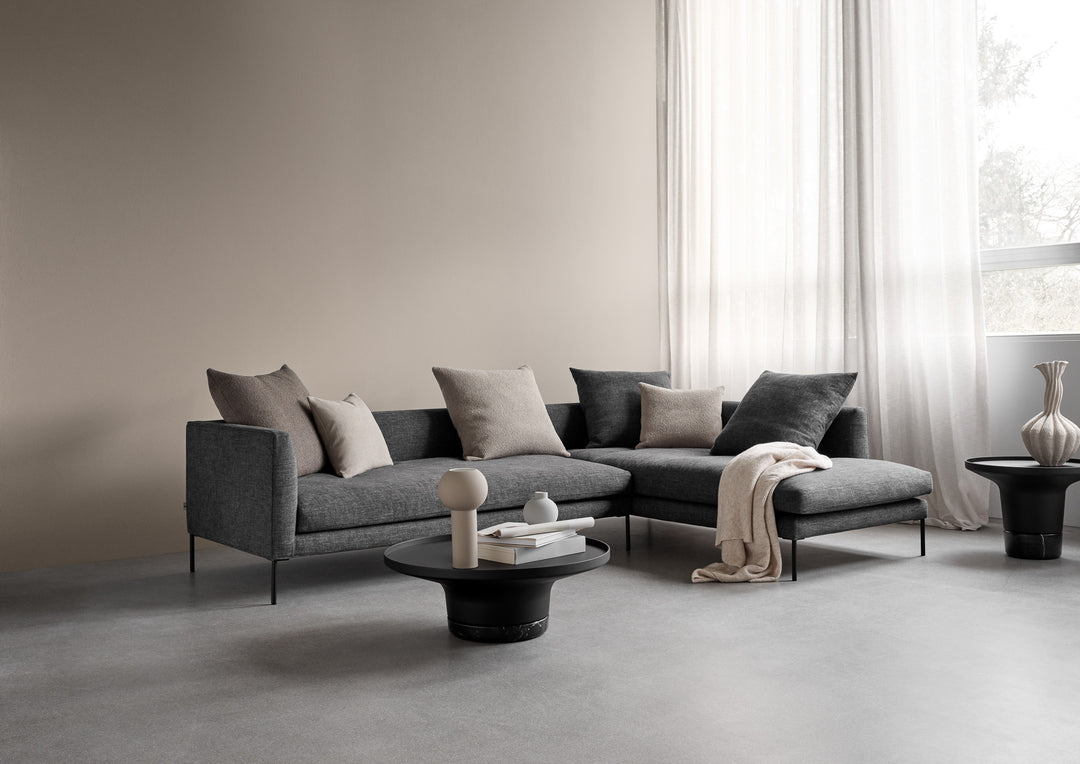De Wendelbo Blade is een modulaire Sofa die door het ranke onderstel van zwart staal lijkt te zweven. Een hoekbank wordt gecreëerd door de combinatie van een bank met aan een kant een armleuning en een chaise longue. Er zijn 23 modules verkrijgbaar, waaronder een bijpassend hoekelement en een hocker. De losse kussens geven vrijheid om kleuren en texturen te mixen en daarmee de sofa een persoonlijk uiterlijk te geven.