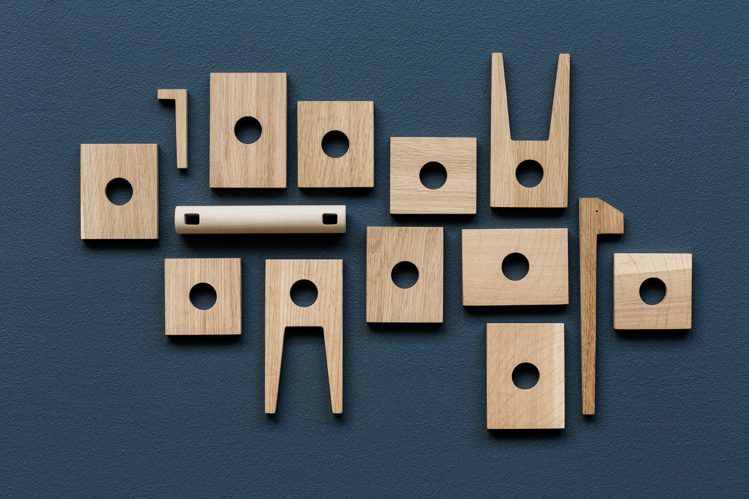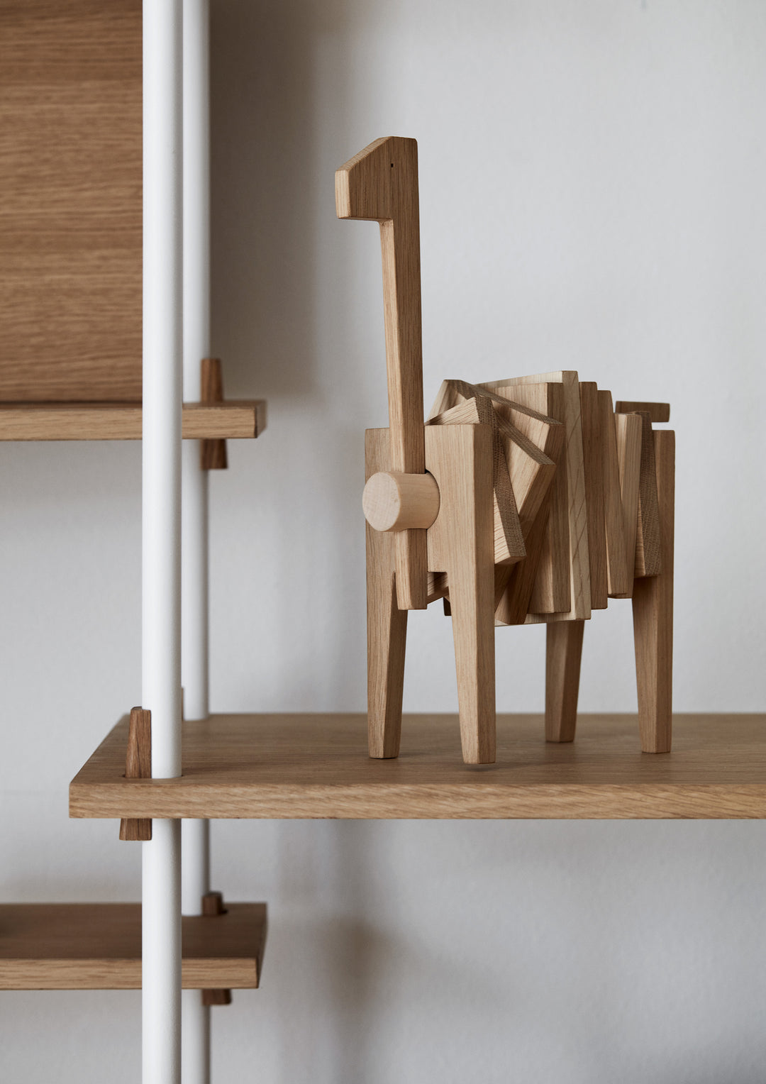 Dit decoratieve houten speelobject kan op veel verschillende manieren in elkaar gezet worden, zodat er steeds een ander figuur tevoorschijn komt.