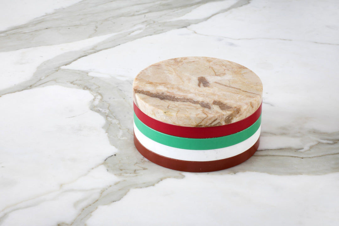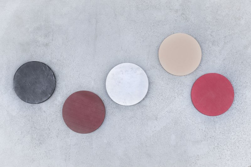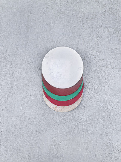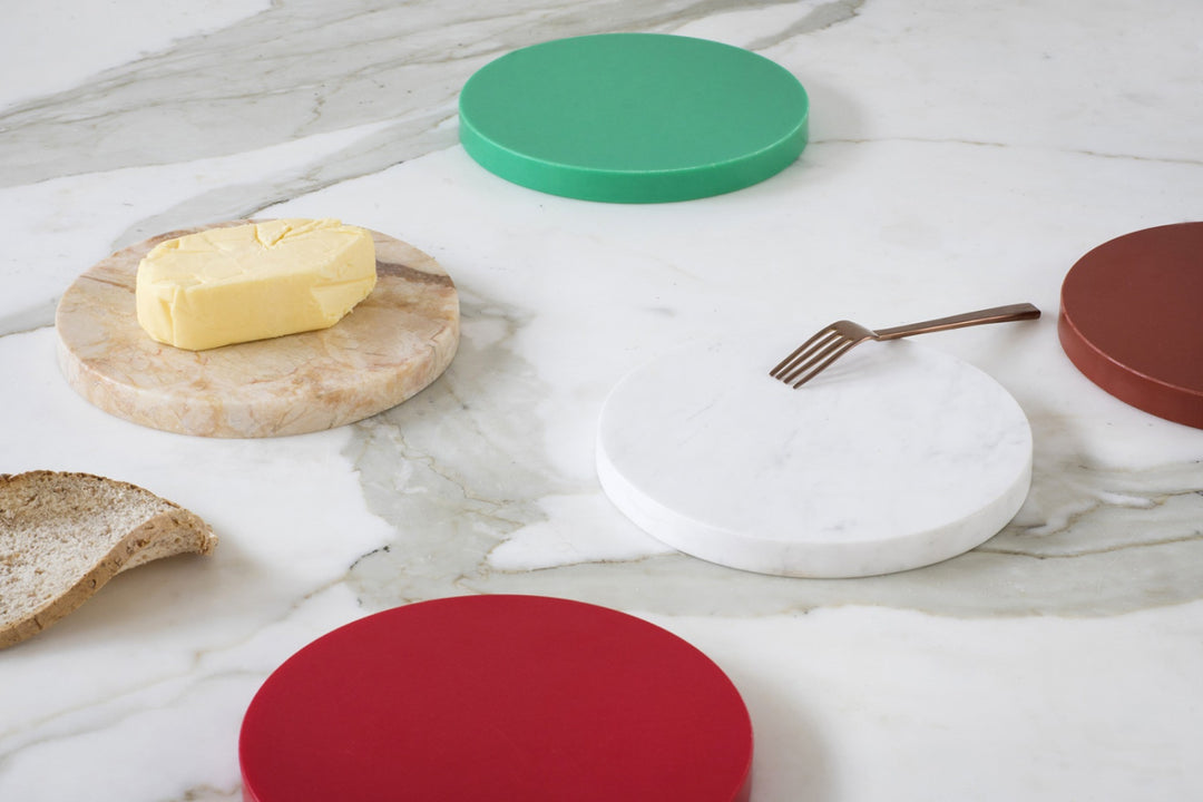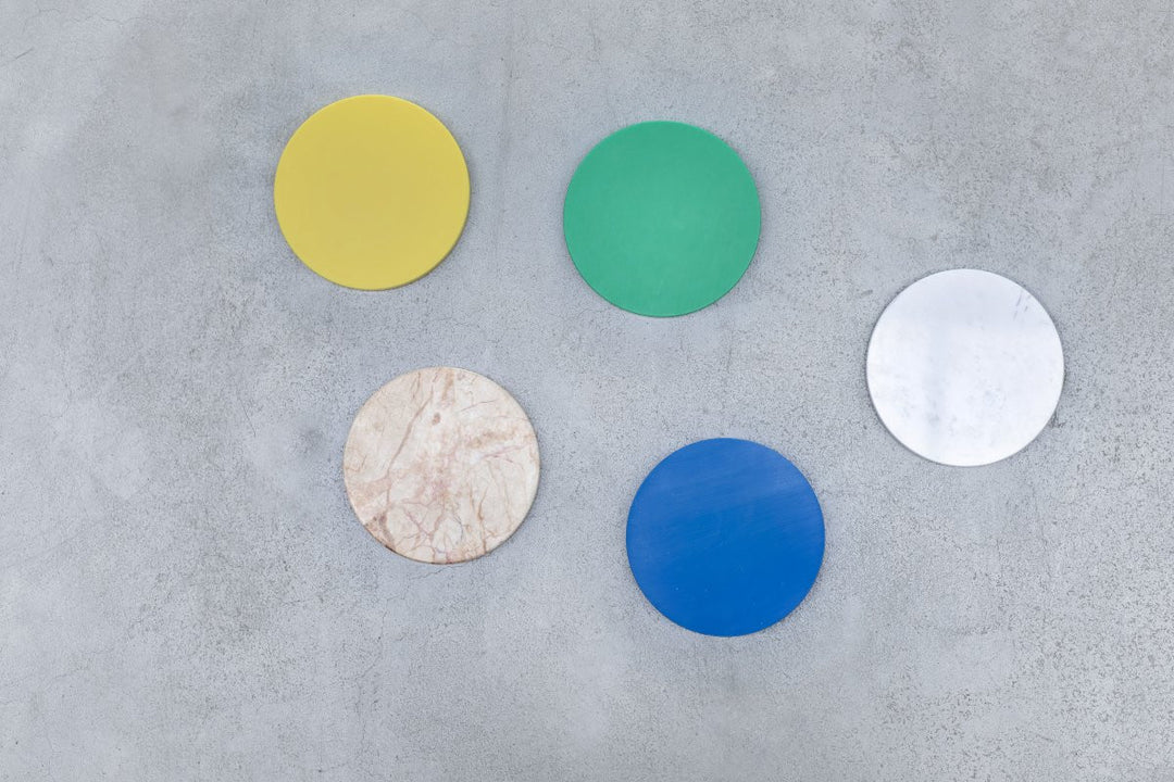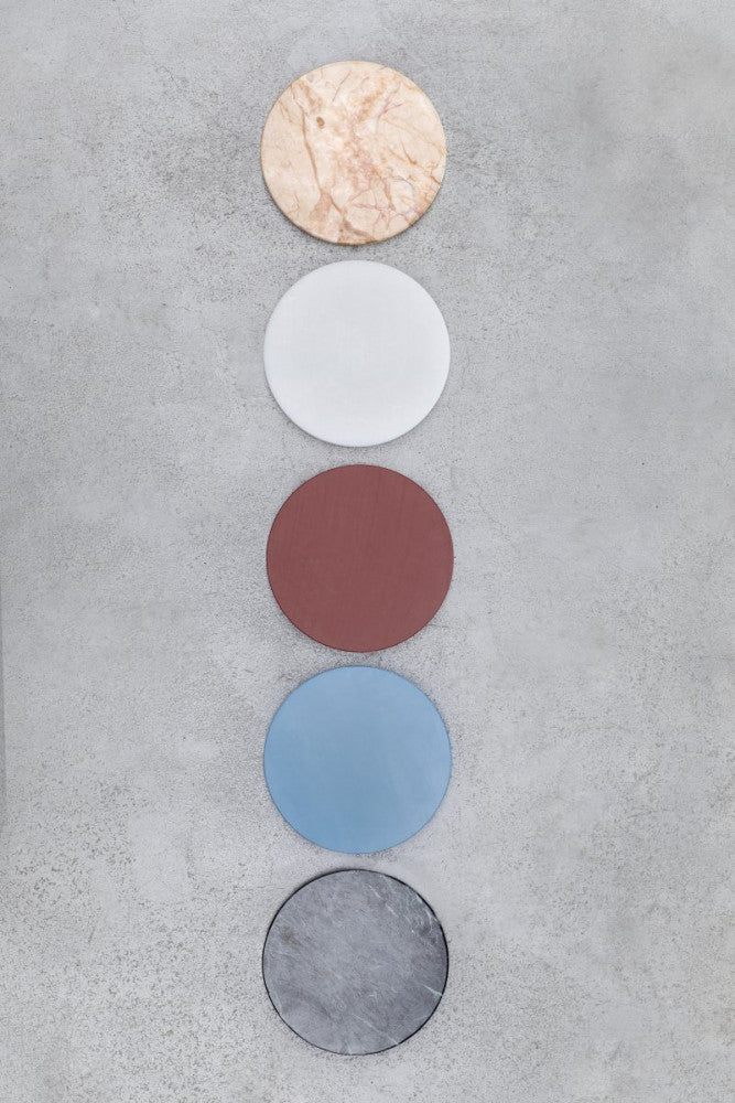 Deze set van vijf cirkels is ontworpen door Muller Van Severen en opgenomen in de collectie van Valerie Objects. De cirkels hebben een minimalistisch, kleurrijk en haast sculpturaal uiterlijk. Deze plateau's kan je bijvoorbeeld gebruiken om eten op te dienen, als onderzetter of als snijplank. De Five Circles komen in 3 effen gekleurde schijven van Polyethyleen en 2 van marmer. Polyethyleen kan toegepast worden bij temperaturen tot maximaal 70° Celsius.