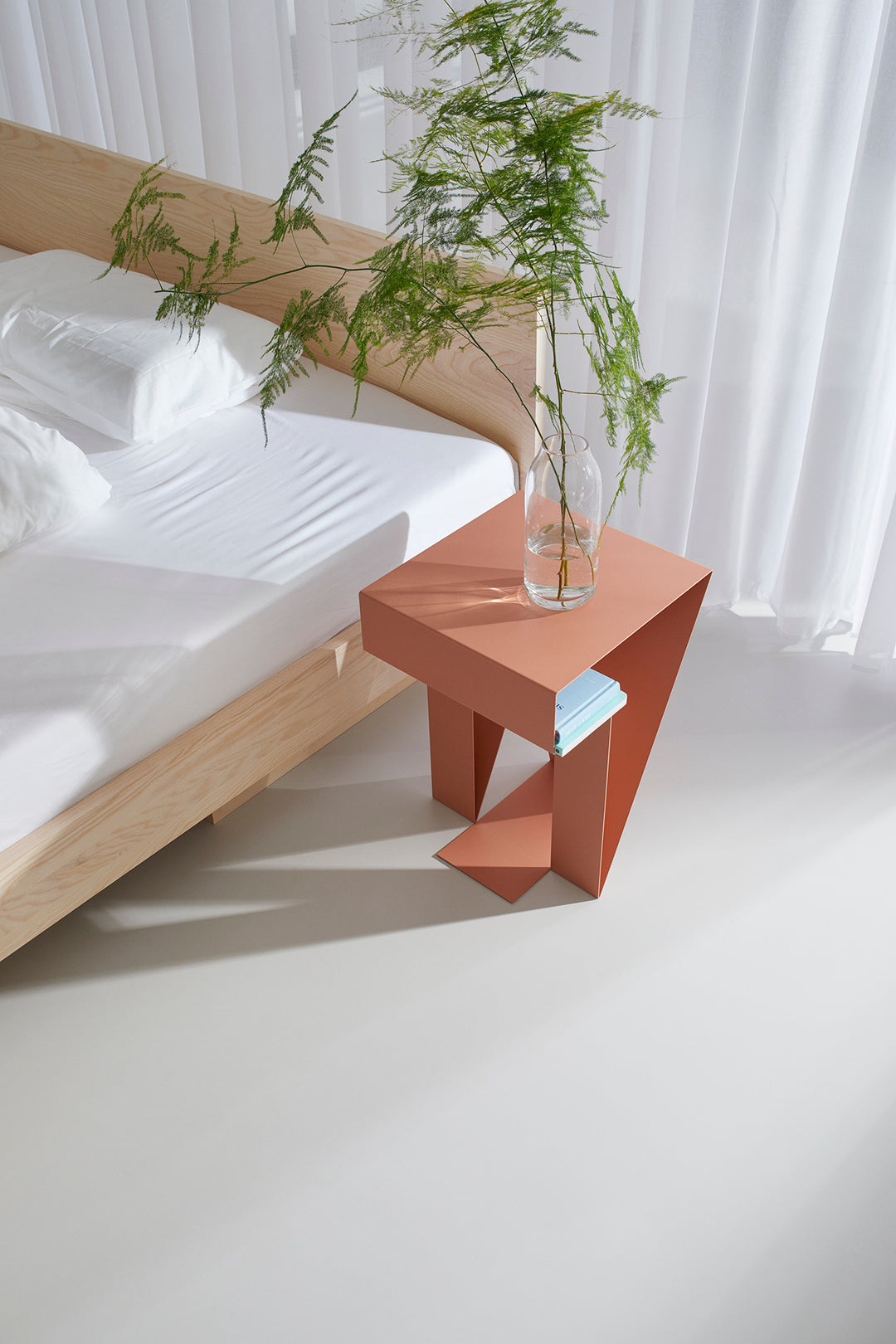 Kenmerkend voor de Neumann Bijzettafel is de vorm van de tafel, die bestaat uit gevouwen en overlappende vlakken. De tafel wisselt telkens van uiterlijk, afhankelijk van de kant van waar je hem bekijkt. De ruimtes en niveaus bieden ruimte bieden aan alledaagse voorwerpen.
