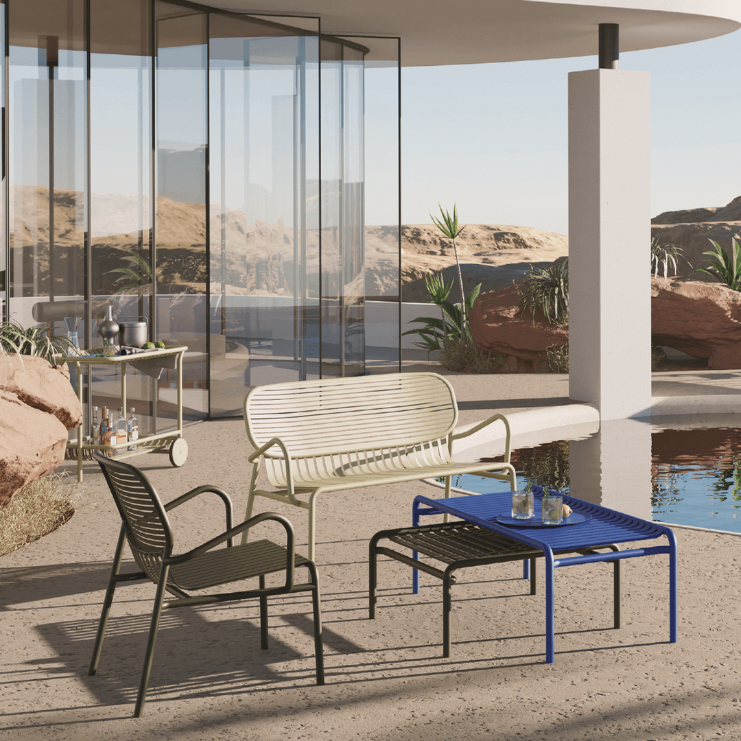 De Week-end Coffee Table is gemaakt van onderhoudsvriendelijke aluminium en is afgewerkt met korrelige epoxyverf. De tafel is verkrijgbaar in diverse kleuren.