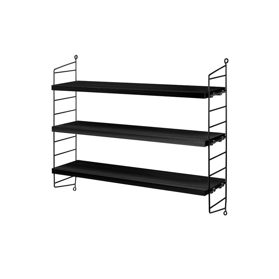 De String Pocket is de compacte versie van het rijke en modulaire String Systems. De Pocket variant bestaat uit twee wanddragers en drie planken. Dit model is uitgevoerd met zwart essenfineer. Dit betreft voorraad nieuw in de doos en is nu afgeprijsd.