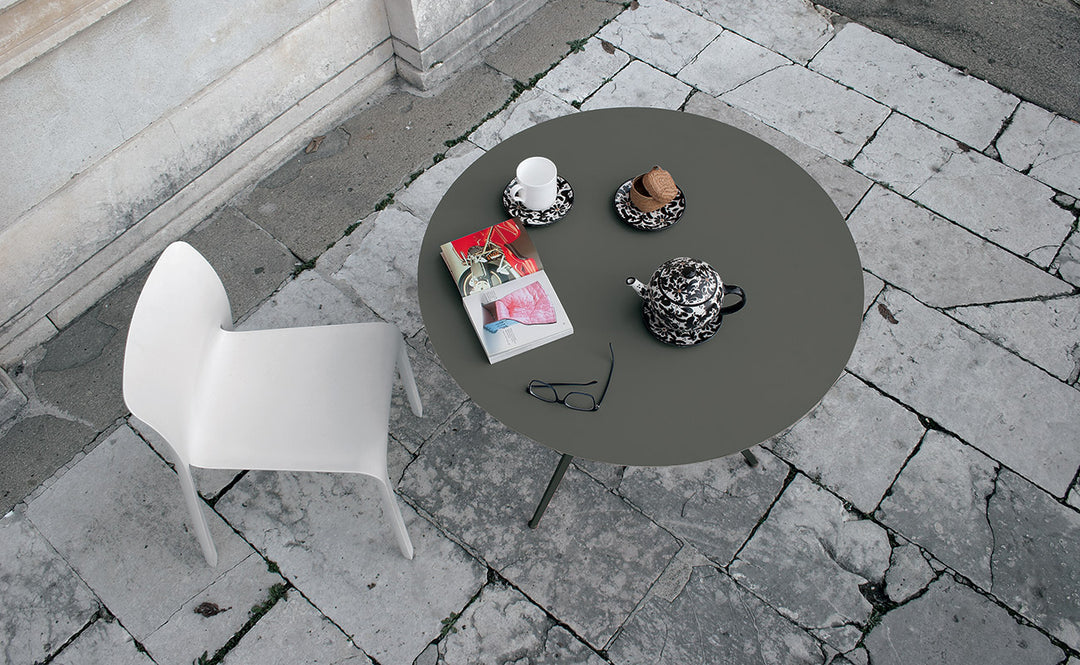 Balance is een serie eetkamertafels met een grote variatie aan afmetingen. Kenmerkend zijn de gelakte stalen structuur en het blad dat verkrijgbaar is in een aantal vormen, kleuren en materialen. Sommige afmetingen zijn ook verkrijgbaar met een hoogte van 95 cm. Ook uit te voeren als bureau. Een speciale bewerking maakt de tafels geschikt voor buiten.