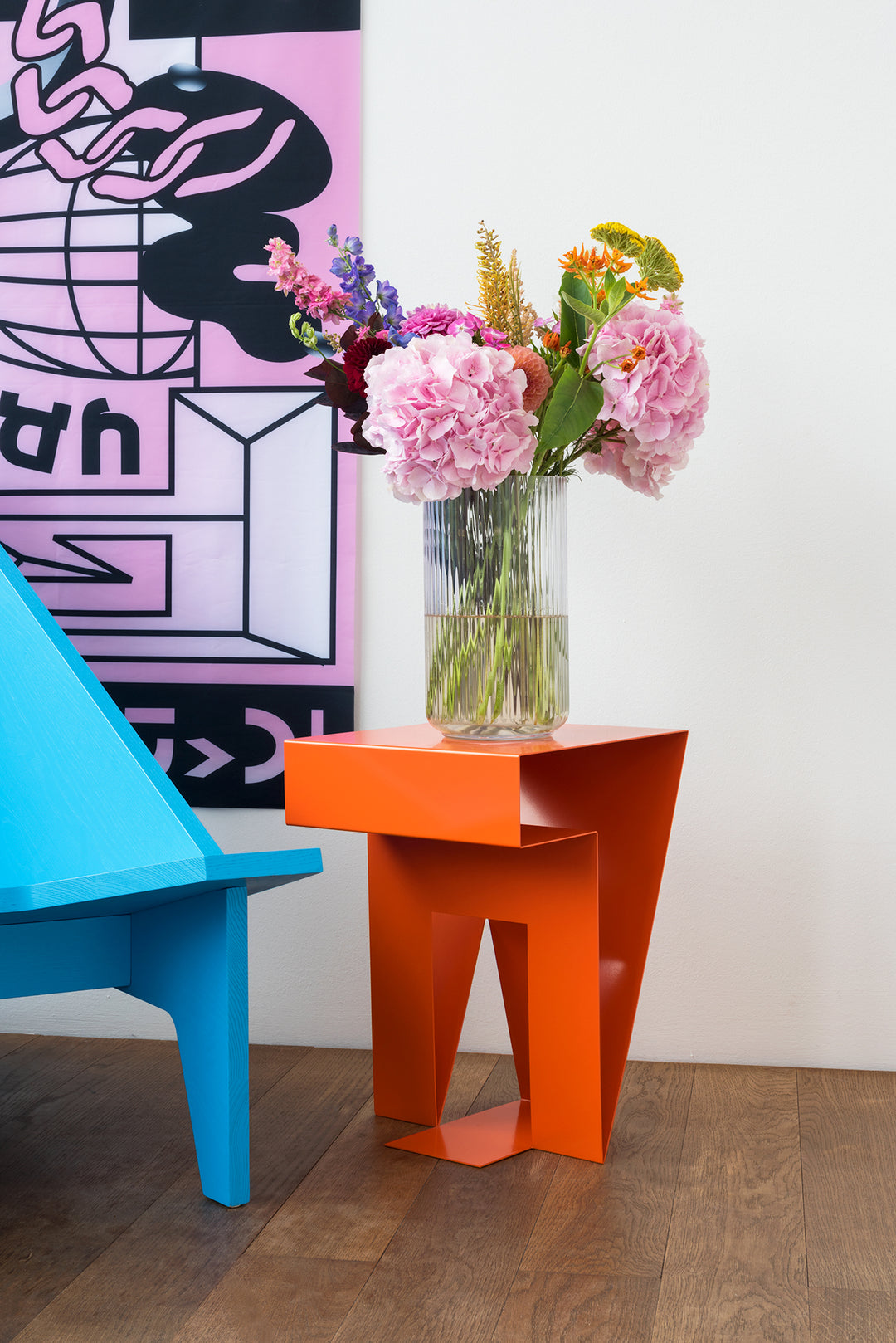 Kenmerkend voor de Neumann Bijzettafel is de vorm van de tafel, die bestaat uit gevouwen en overlappende vlakken. De tafel wisselt telkens van uiterlijk, afhankelijk van de kant van waar je hem bekijkt. De ruimtes en niveaus bieden ruimte bieden aan alledaagse voorwerpen.