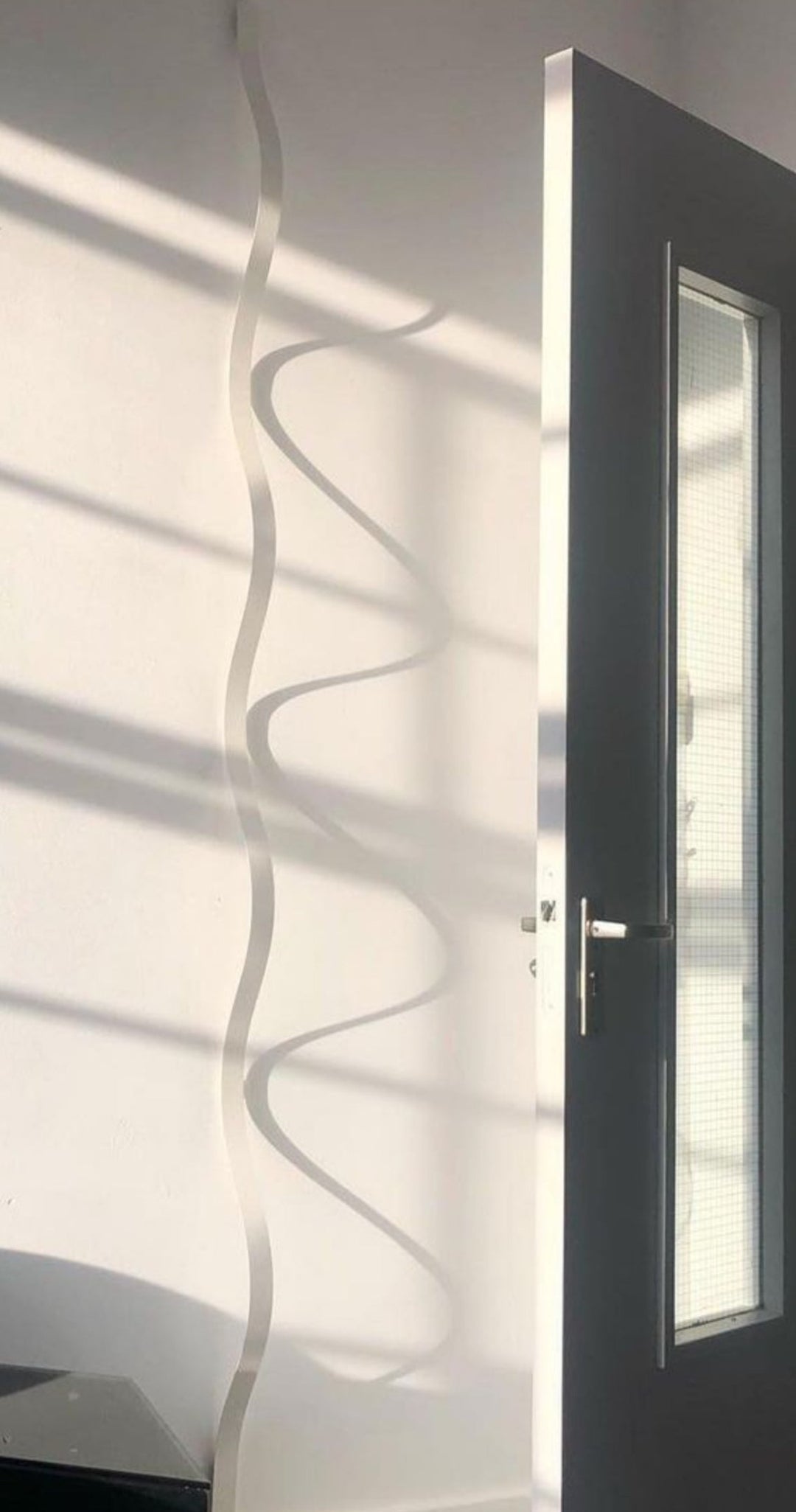 Op vol vermogen kun je met deze lamp de hele ruimte verlichten, maar je kunt de lamp ook dimmen voor een intiemere sfeer. Aan of uit, de Sine Light zorgt voor een abstract sculpturaal stuk in de ruimte. Zodra de lamp aan is geeft het een intrigerende golfvorm van licht op de muur of het plafond.