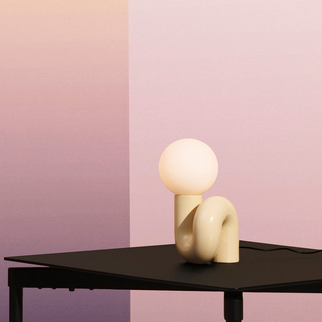 De Neotenic tafellamp is gemaakt van handgeblazen glas en keramiek. De speels vormgegeven lamp is verkrijgbaar in twee maten en heeft een dimbare geïntegreerde LED-lamp.