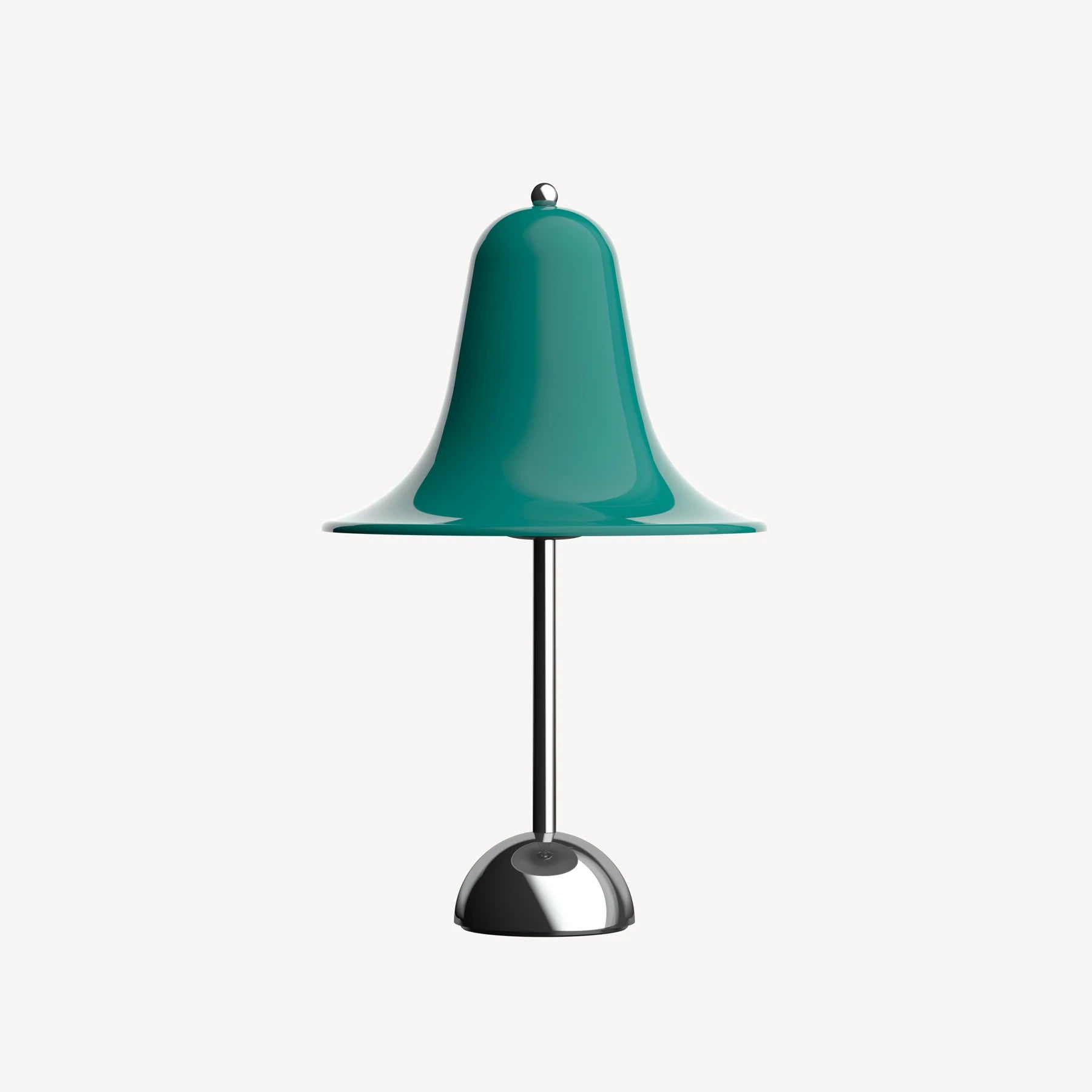 De Pantop Tafellamp is ontworpen in 1980 en wordt gekenmerkt door een klokvormige, wijd uitlopende kap die met de opening naar beneden is gemonteerd. De Pantop Ø23-versie is verkrijgbaar in diverse kleuren. Met een transparant snoer, met aan/uit schakelaar.