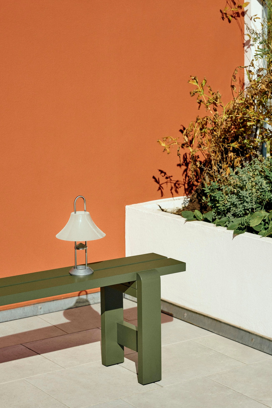 De Weekday Bench is een ontwerp van Hannes & Fritz voor Hay.  De Weekday Bench is een solide, robuuste aanwezigheid met zacht afgeronde hoeken, wat een gevoel van warmte en huiselijkheid uitstraalt. Hij heeft dezelfde eenvoudige constructie als de klassieke picknickbank en is gemaakt van sterke, duurzame grenen planken die mooi patineren en vele jaren meegaan. Het sterke maar universeel aantrekkelijke karakter van de Weekday Bench in combinatie met de watergedragen, weerbestendige oppervlaktebehandeling maakt hem geschikt voor buitengebruik.